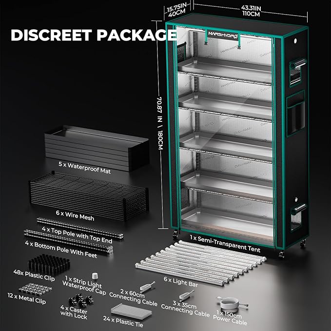 MARS HYDRO 2025 Plant Stand with Grow Lights,6-Tier Plant Shelf with 10 Full Spectrum LED Lamps (225W, 3ft) & Grow Tent | for Vegetables, Seedlings, Plant Growth | 5000K, 43x16x71''
