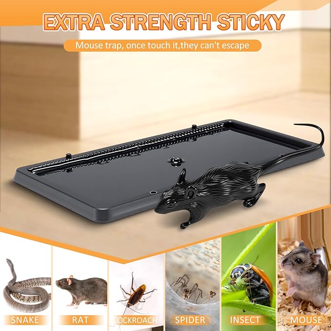 - Ready to Use Without Waiting: 30 seconds quick deployment, the simulated mouse can be pre-placed in the center of the rat traps for home, no additional bait is needed; The adhesive surface is dust-resistant and does not fail in a humid environment; After capture, the sticky trap can be discarded without residue
