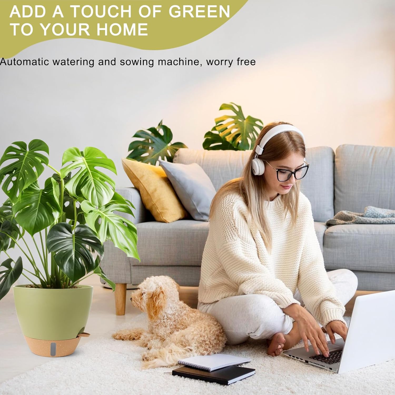 Plant Pots,12/10/9/8/ Inch Large Plastic Self Watering Flower Pots Indoor Outdoor with Drainage Holes, Deep Reservoir,Nursery Planting Pot for Indoor Out Door Plants