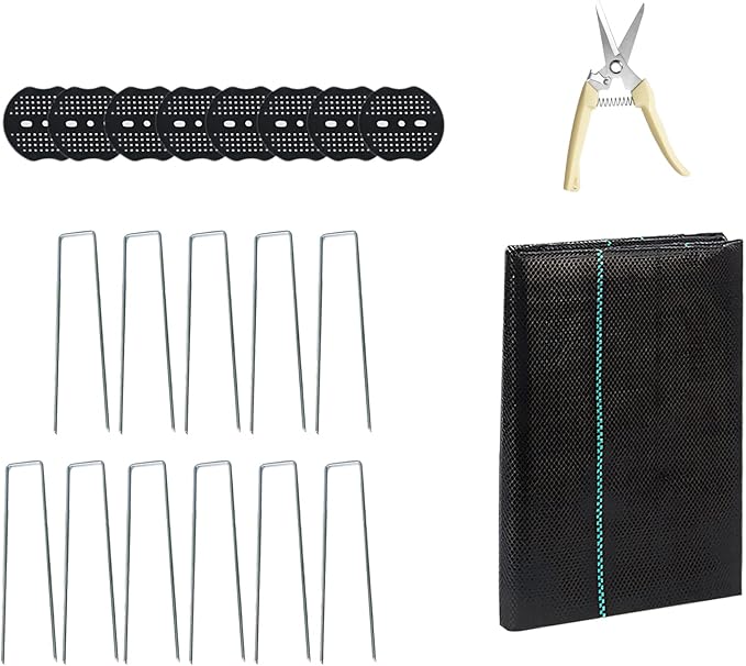 - 【Easy To Install】 The kit comes with 40 landscape fabric staples and 40 weed fabric stakes gaskets, as well as a pair of garden shears. The U-shaped staples and washers securely fasten the weed barrier fabric in place, while the shears make it easy to cut the fabric to size as needed. No additional tools are required, doubling installation efficiency