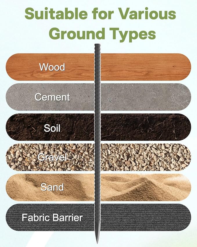 - Easy Ground Insertion: The top is flat, the force is evenly distributed, and it is not easy to slip when hammering. chisel-point tip easily penetrates soil, gravel, or hard ground with minimal effort