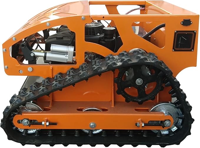- 【45° slope for Tracked】:The 45-degree tilt capability allows the mower to operate efficiently on steep slopes, ensuring better coverage of hilly or uneven terrain. Tracks provide greater surface contact with the ground, and at a 45° incline, they offer better grip and balance compared to wheels, reducing the risk of slipping or tipping over.
