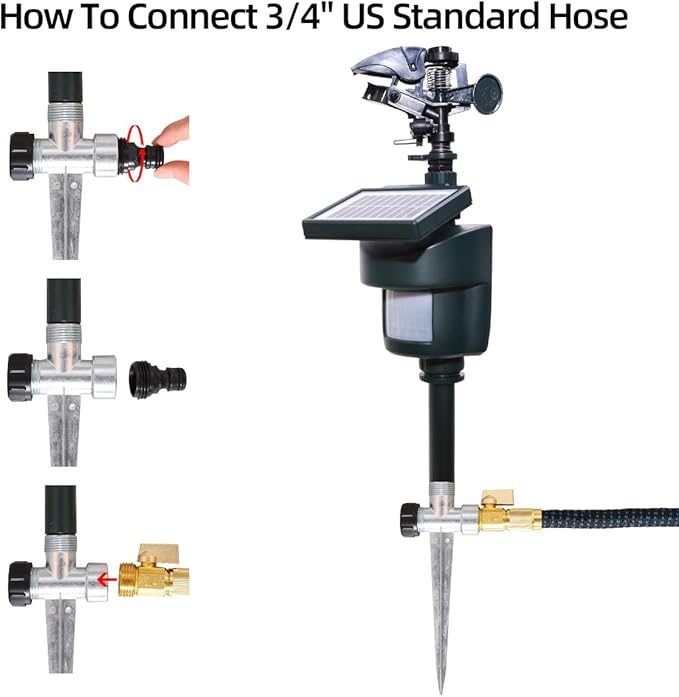 Motion Activated Sprinkler with Solar Panels Deter Animal Cat, Birds, Dogs Repellent Outdoor Lawn Motion Sensor Water Sprinkler for Garden