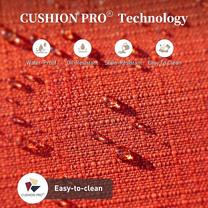 - ALL WEATHER USE: The fabric of this furniture set is applied with CUSHION PRO TECHNOLOGY. It's waterproof, oil resistant and stain resistant, makes the fabric so easy to clean, you can easily wiped off the water, wine, oil and bird droppings with a rag. 47'' coffee table's top is made of toughened glass, stronger and has better security than normal