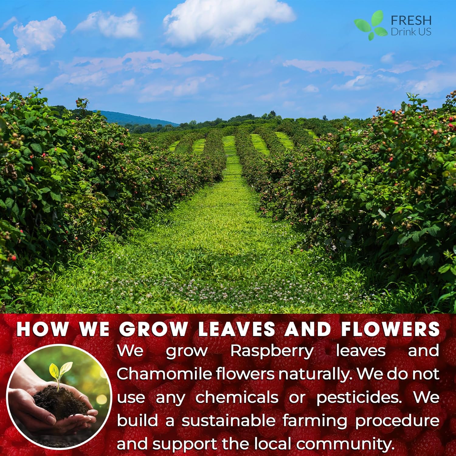 FreshDrinkUS, 75 Bags Premium Raspberry Leaf Teawith Chamomile Flavor, Eases Menstrual Cramps & Supports Healthy Pregnancy, Naturally, Caffeine-Free, Sugar Free, Vegan