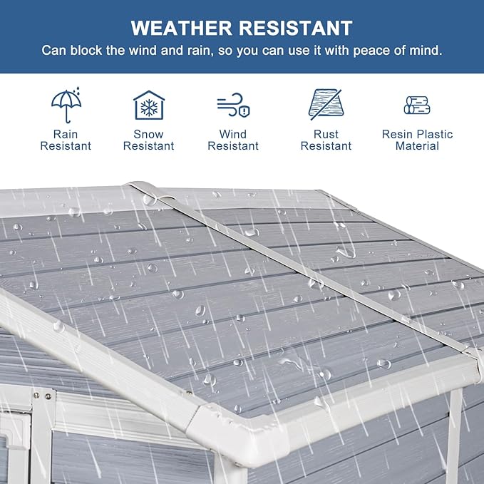 - Resin Materials: This storage shed constructed from high-quality resin, the item offers exceptional durability, enabling it to withstand various outdoor weather conditions, including UV rays, humidity, and temperature fluctuations.