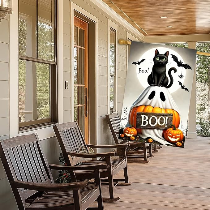 - Fun Gift or Seasonal Accent: Each package contains one Halloween garden flag. Whether you're hosting a Halloween party or simply love fall décor, this flag is a charming and themed piece for enhancing your seasonal look with cats, pumpkins, bats, and spooky ghost imagery.