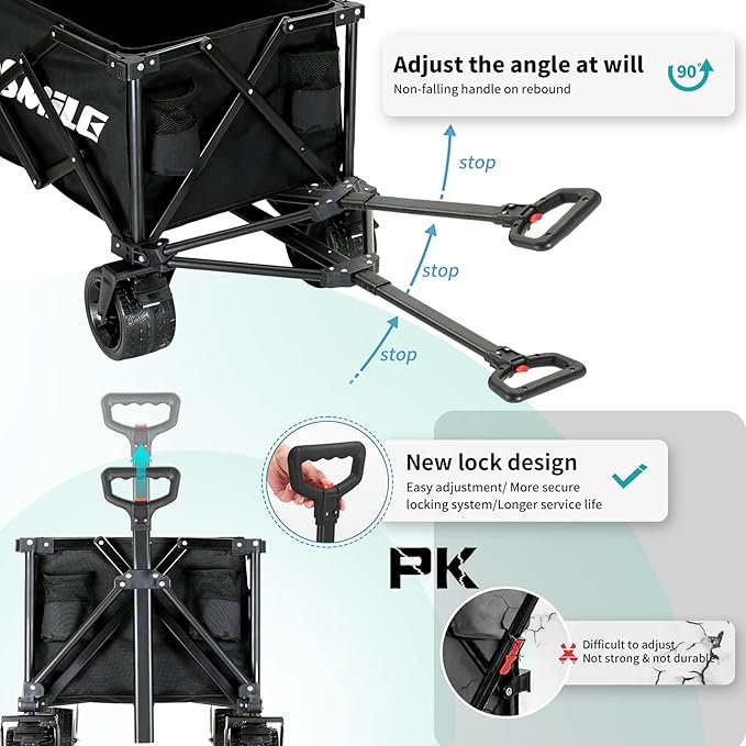 - 【Adjustable Handle for Effortless Pulling】:The 360° rotating telescopic handle reduces strain on your arms and back. Customize the length for kids or adults—ideal for beach trips or crowded campsites.