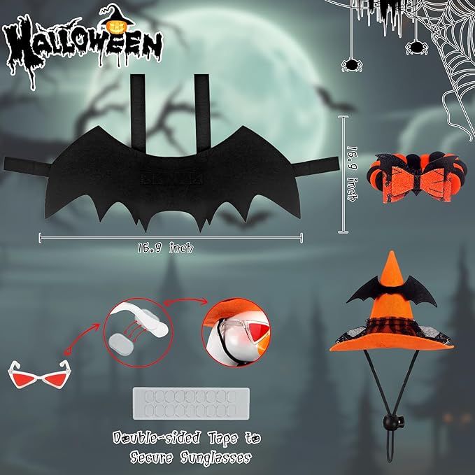 - Halloween Theme - Our Halloween style goose outfit is a perfect fit for a 17" or 23" inch Goose, comes with 1 Halloween Hat,1 pair of sunglasses,1 adjustable bat wings,and 1 orange collar, bringing vibrant Halloween fun to your lawn or patio.