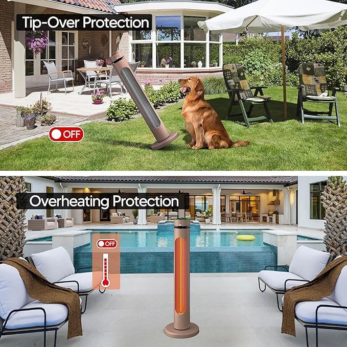 - Multiple Safety Protections: With the automatic shutoff sensor, when tilting off the ground or being knocked over by pets, the porch heater shuts down automatically so you don't have to worry about it accidentally tipping over by the accidental collision. Outdoor cover: Our product is equipped with a cover, which can be used to protect the product after winter use without having to disassemble and store it