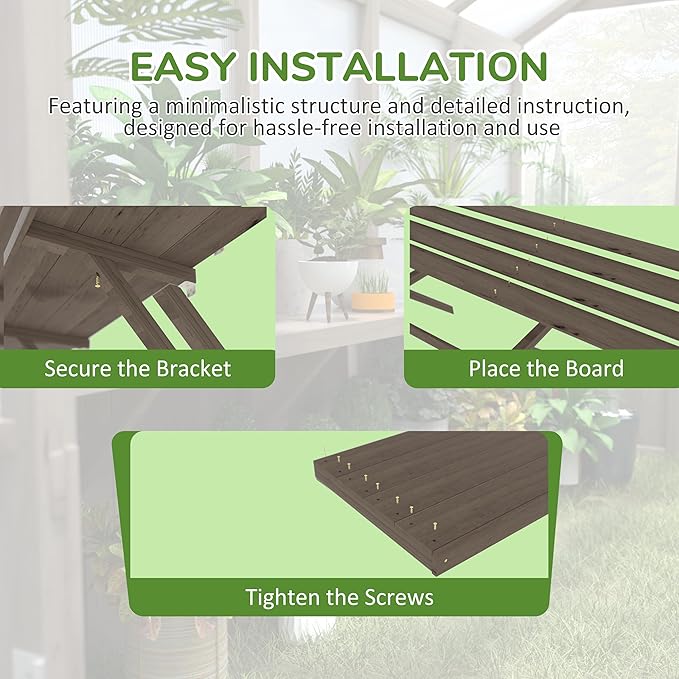 - Durable and Easy Assembly: The sturdy triangular support construction and 90LBS load-bearing capacity ensure long-lasting durability, and assembly is quick and straight forward. Maintaining your greenhouse Workstation is simple—just wipe it down with a damp cloth and avoid harsh chemicals to preserve its finish and integrity