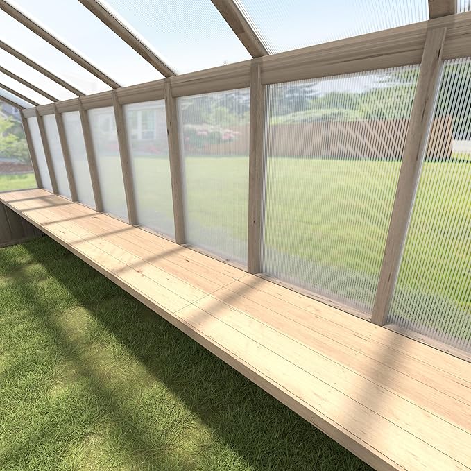 - Dimensions: This 184.25"L X 15.35"W greenhouse storage shelf fits 8x16FT, 6x16FT greenhouses which can perfectly meet all your plant care needs. Please choose the size according to the long side of the shelf. The greenhouse indoor tabletop design focuses on practicality and durability, providing a convenient workspace for your plant cultivation, pruning and preparation tasks