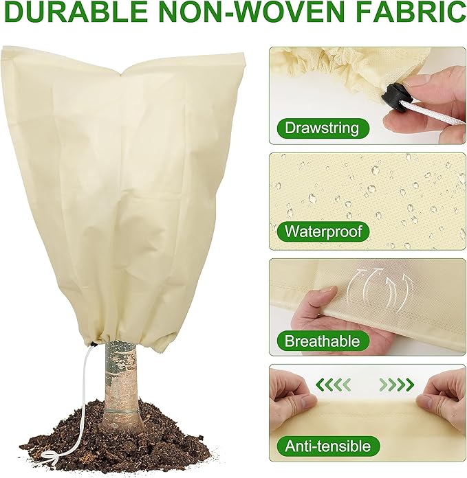 - Reusable & Durable – Made from tear-resistant, weatherproof material, these plant blankets can be reused season after season. Ideal for shrubs, small trees, potted plants, and garden beds.
