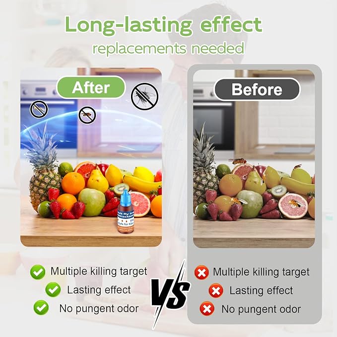 - Efficient Fruit Fly Killer: Our fruit fly trap bait refill amazingly attracts,traps and kills fruit flies.It is recommended to use with fruit fly trap for better effect.