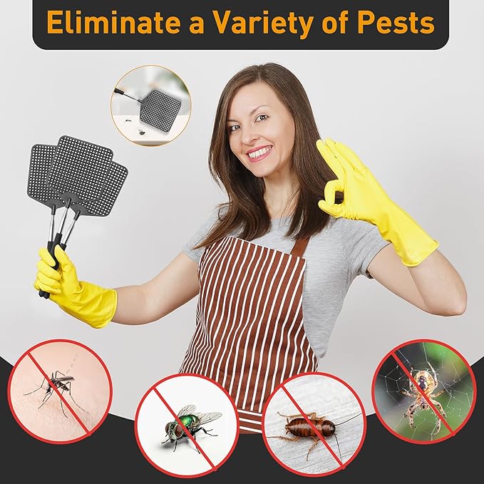 - 【High-quality thick plastic paddle】Fly swatter offer a wide paddle to greater odds of hitting flies and pp plastic paddles won't break easily after contact with a hard surface.