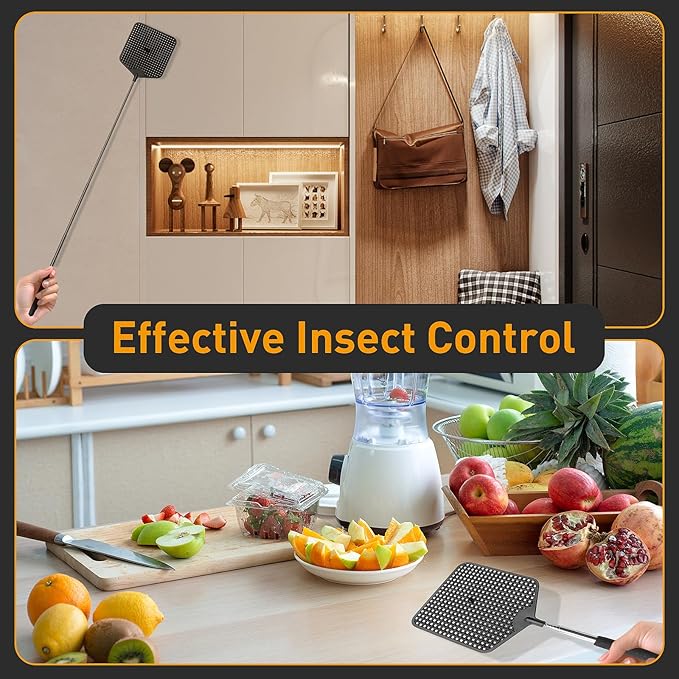 - 【Extendable Pole】Extendable fly swatter boasts a long extendable pole made from Stainless steel, which is durable and sturdy . It may reach 30.3 inches in length and no flies will escape even in far.