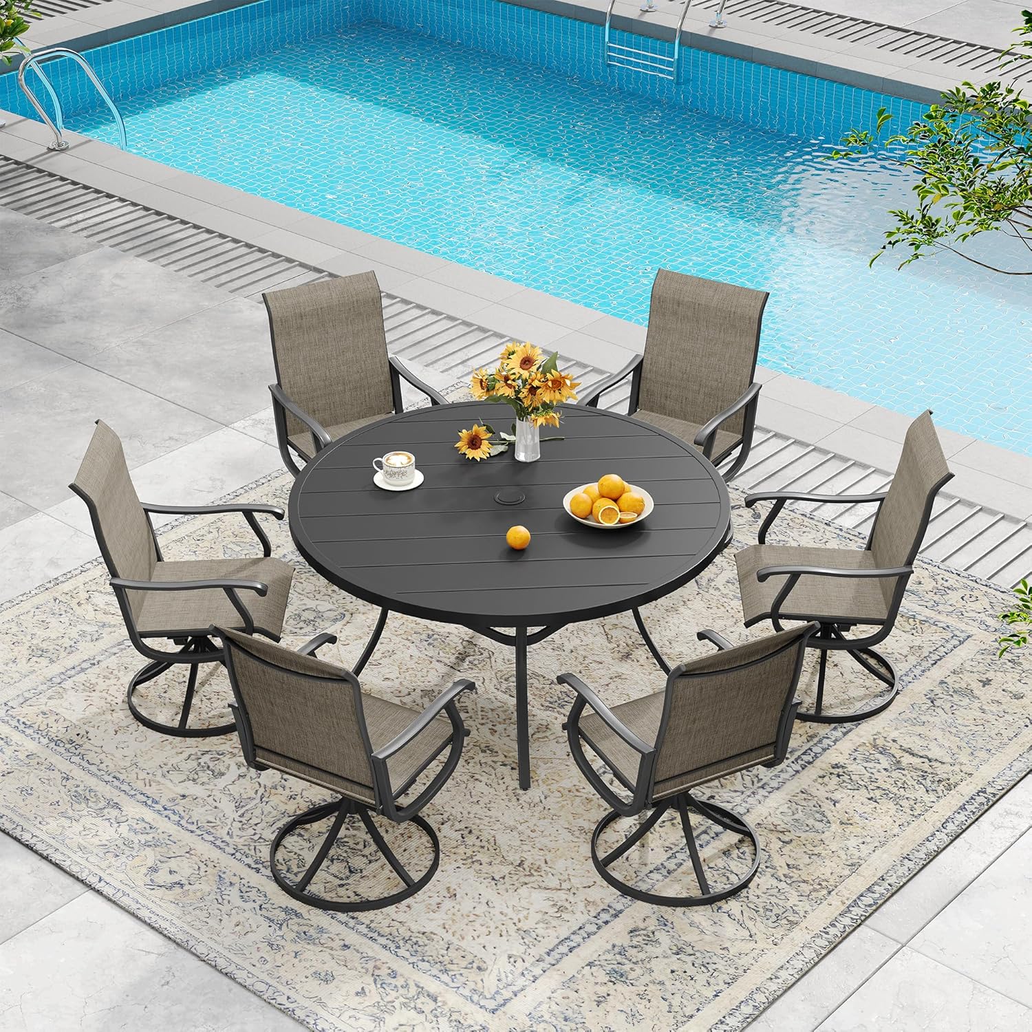 DIFY 50" Round Outdoor Patio Dining Table for 6, Metal Patio Table with 1.57" Adjustable Umbrella Hole, All-Weather Dining Furniture Table for Backyard Lawn Garden, Black