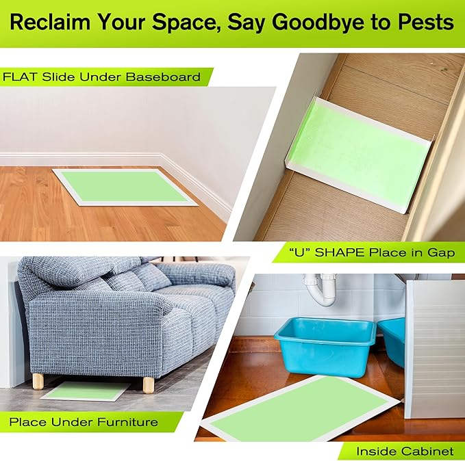 - [Green Glue Stress Free Check ]Our mice glue boards utilize an advanced glue formulation for catch and hold. High contrast glue color allows for quick rodent identification no need to get too close and face an uncomfortable sight. Note: Rodent may still be alive when trap is checked