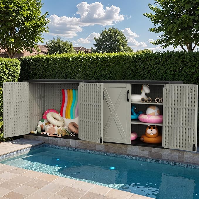 Greesum Outdoor Storage Cabinet, 25 Cu.Ft Deck Box Without Shelves, Waterproof Plastic Storage Bin for Patio Cushions, Gardening Tools, Lockable and Sidehandles, UV Resistant, Beige