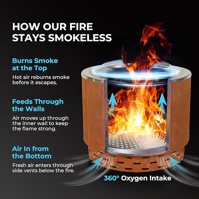 - 【Engineered Smokeless Operation】: Experience cleaner gatherings with our advanced airflow system that minimizes smoke by up to 90%. Enjoy the ambiance and warmth without the eye irritation or lingering smell on clothes.