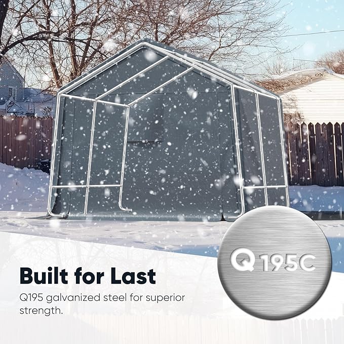 - 【Multiple Uses】This garden storage shed can be a motorcycle storage shelter, ATV storage shed, bike storage tent, or small vehicle garage shelter. It is also suitable for small lawnmowers, firewood or any other gardening tools.