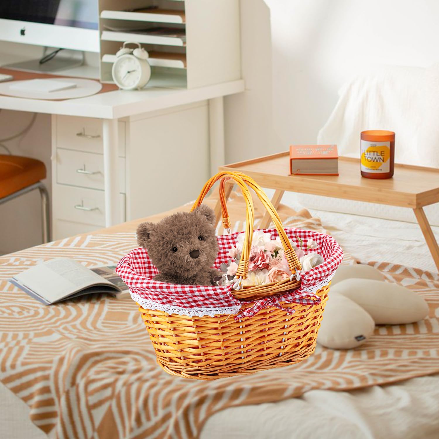 - 【Easy to Carry with Handle】 Equipped with a sturdy handle, this Willow Woven Picnic Basket with handle is easy to transport, making it the perfect companion for picnics, market shopping, or as a gift basket for any occasion.