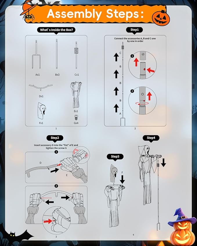 - Lightning Setup: Haunt in minutes! The crystal-clear manual ensures zero-fuss assembly for anyone. If you encounter any issues, contact us directly for swift resolution—this seamless combination of effortless installation, detailed guidance, and worry-free support creates the ultimate screaming experience