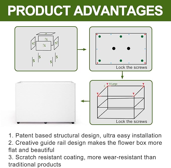 - 【OPTIMAL DRAINAGE SYSTEM】Equipped with pre-drilled drainage holes, this planter box ensures efficient water management, preventing the risk of overwatering your plants.