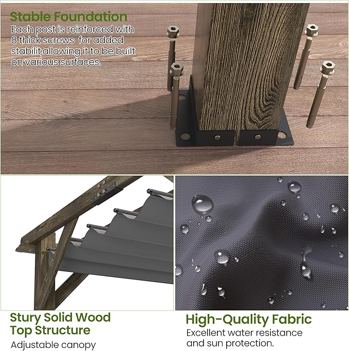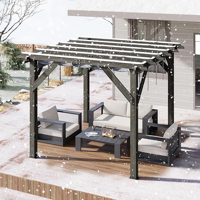 10x10 Ft Outdoor Wood Pergola with Retractable Roof & Mounting Kit Wooden Gazebo, Premium Support Structure, Wind and Snow Supported, Modern Outdoor Pergola for Porch, Grapevine and Deck