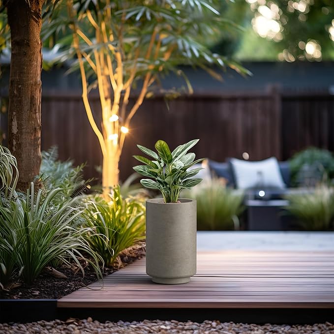 Kante 15.7 Inch Tall Concrete Planter, Round Pedestal Design Garden Pot for Indoor Outdoor Plants, Modern Garden Pot with Drainage Hole, Weathered Concrete Finish with Warm Brown Interior
