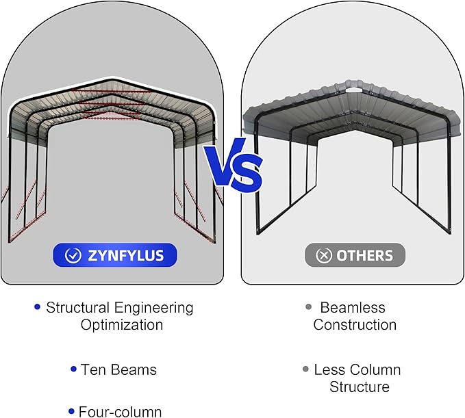 - EXCELLENT ENGINEERING: Vertical side panels reduce the accumulation of rain, snow, leaves and other debris, eliminating the need for manual cleanup and reducing the risk of corrosion and collapse. Carports can withstand wind speeds up to 100 MPH and snow loads up to 35 PSF, providing reliable year-round protection