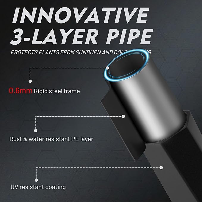 - PE-Coated Steel - Made from PE-coated steel, this garden trellis for climbing plants is rustproof, weather-resistant, and built for long-lasting outdoor performance. The protective coating helps reduce surface temperature by up to 34°F compared to regular metal trellises, shielding delicate vines from heat stress and sunburn.