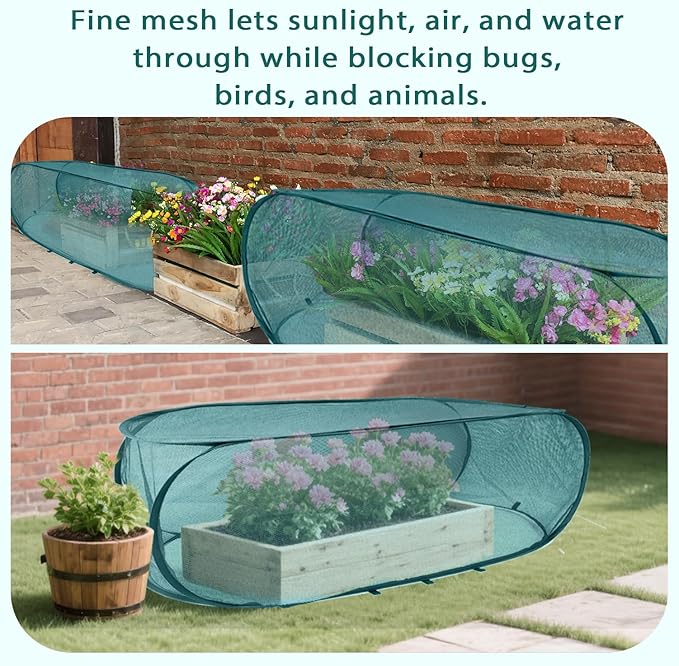 - Premium Mesh Protection:Features ultra-fine mesh that blocks birds, rabbits, deer, insects, and small animals while allowing sunlight, air, and water to reach plants naturally. Promotes healthy growth without chemical deterrents