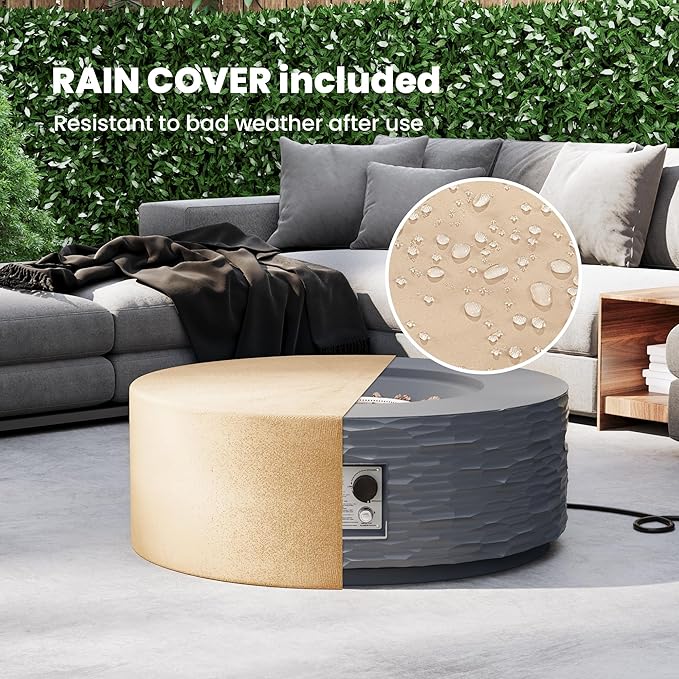 - Bold & Modern Centerpiece: This 35″D x 35″W x 11.5″H round fire table brings sleek, contemporary style to any patio, garden, or backyard gathering space.