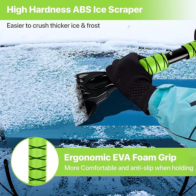 44" Ice Scraper and Snow Brush for Car Windshield with Extendable, 360° Pivoting, Soft Bristle Head, Foam Grip, for Car, Truck, SUV Window Tool (Green)
