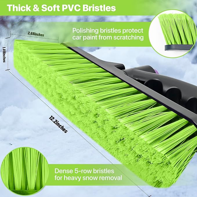 - Non-Scratch Bristles: The five rows of thick PVC bristles are softer after polishing, ensuring quick and non-scratch snow removal from the roof, windshield, tires, and any other surface of your car