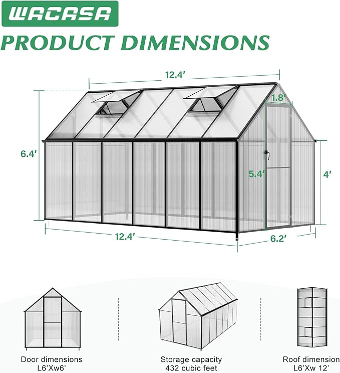 - Professional-Grade Polycarbonate: 4mm 800G multi-wall panels block 99% sunlight while maintaining 90% light transmission - 3X more durable than standard PVC greenhouses