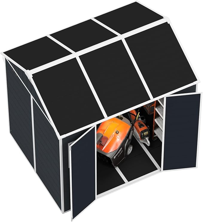 - 【Spacious & Versatile Storage】One of the standout features of this plastic room is its generous storage capacity. The ample interior space can easily accommodate furniture, equipment, tools, and more, making it perfect for a variety of uses. Whether you need an outdoor workshop, a cozy holiday retreat, or a practical storage warehouse, this versatile space can be tailored to meet your needs. The flexible layout allows you to customize the area to suit your preferences.
