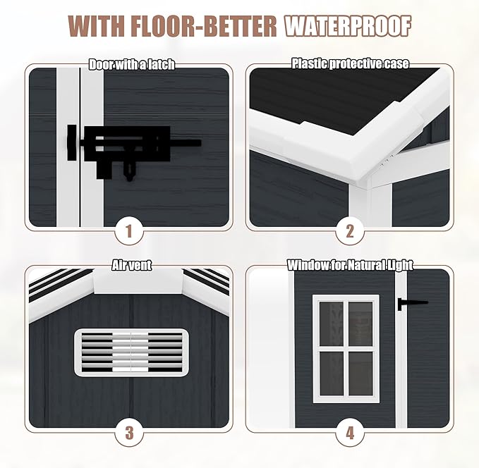 - 【Easy to Assemble】Featuring a user-friendly design, this shed comes with clear instructions and all necessary components for a quick and easy assembly process. Whether you’re a DIY enthusiast or a first-time builder, you can set it up effortlessly, saving time and energy while enjoying a functional and stylish outdoor storage solution.