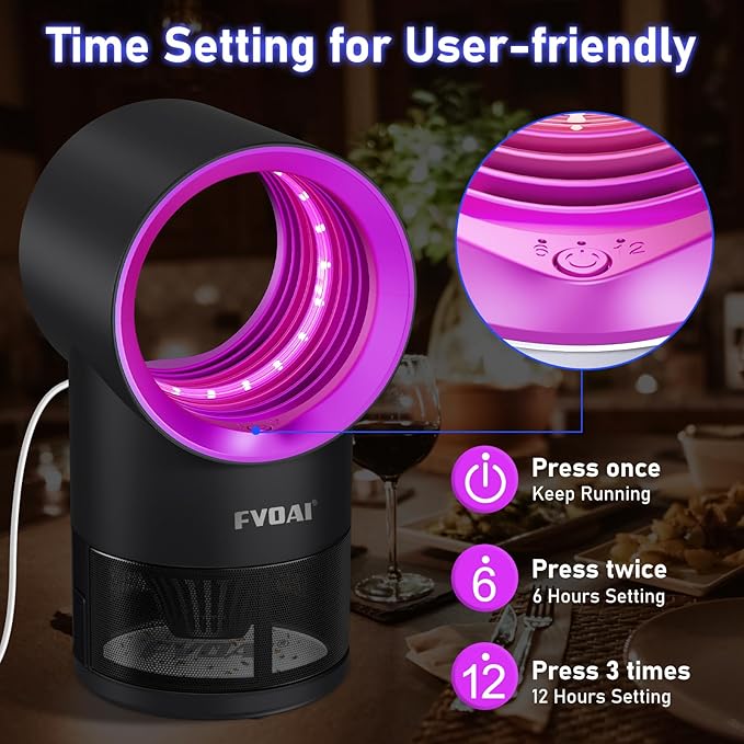 - Time Setting Option: Plug in the usb cable and adapter, press the indoor bug traps on/off button to work. Continuous run or 6/12 hours timing function, more convenient to daily use.