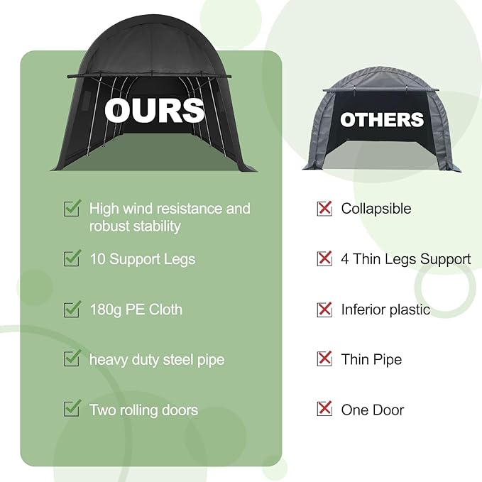 - ✅ 【Heavy Duty Structure & Built to Last】 COBIZI car port is made with a galvanized rust-resistant steel frame that prevents cracking, peeling, rust, and corrosion. It is secured with elastic balls, ground nails, and wind ropes, and features 10 galvanized steel legs and a ratchet fixing method to ensure the stability and durability of the carport in all seasons, providing comprehensive and reliable protection for your vehicle.