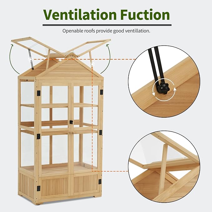 Macrout 3-Tier Solid Wood Cold Frame Greenhouse Cabinet Adjustable Shelves, Dual-Use Insulated Shed for Outdoor Garden & Indoor Balcony Planting, 0847