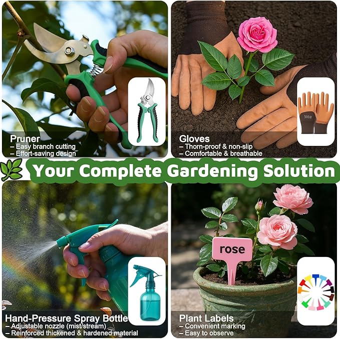 - 【The Perfect Gift for the Gardener in Your Life】– This absolutely charming gardening set is the ideal gift for every plant-loving woman in your life. Featuring a variety of essential gardening tools in a beautifully designed gift box, it's practically a one-stop solution for all her gardening needs.A wonderful present for any occasion—Mother’s Day, Valentine’s Day, Christmas, Thanksgiving, or simply as a thoughtful gift for anyone who enjoys gardening as a relaxing hobby.