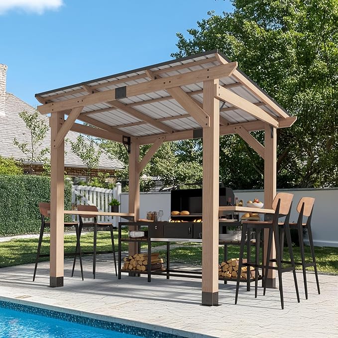 - EASY ASSEMBLY— With clear instructions provided, setting up the 6x8 cedar grill gazebo is a straightforward task that can be completed in just a few hours with minimal effort. It's an ideal DIY project for friends and family to enjoy together.