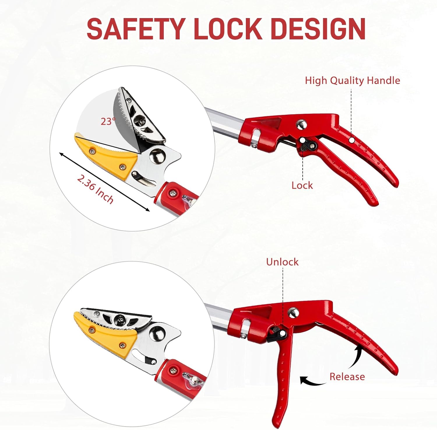 - 2-in-1 Dual Use & Compact Storage: Switch seamlessly between long handled pruners and garden clippers. The lightweight, foldable design with button-type telescopic rod makes it easy to store and carry, ideal for both home and professional pruners for gardening