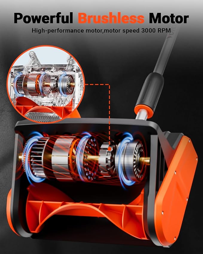 - Brushless Motor & Efficient Snow Removal - Equipped with a powerful 24-Volt brushless motor and rechargeable 4.0 Ah lithium-ion battery pack, this snow shovel battery powered has enough power can clear snow up to 13 inches wide with an optimal snow clearing depth of 6.5 inches, throw snow up to 22 feet, with a maximum runtime of 25 minutes.