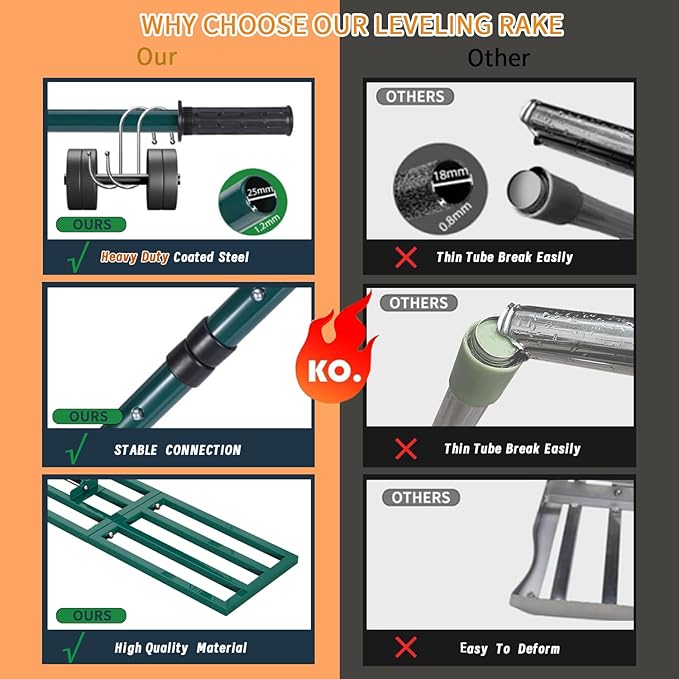 - Easy to Install: Installation is very simple. Includes step-by-step installation instruction,Rest assured, every Lawn leveling rake sent to you by Beeowner has undergone a series of quality inspection processes. If you have any questions, please contact us, and we will provide you with a satisfactory solution.