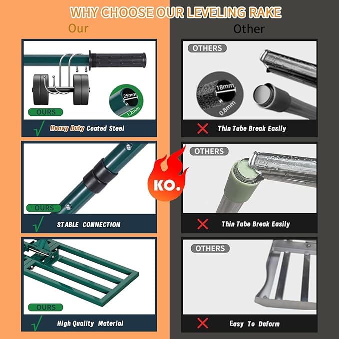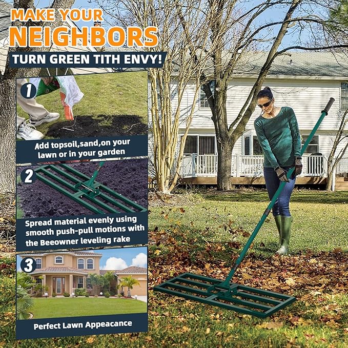 - Easy to Install: Installation is very simple. Includes step-by-step installation instruction,Rest assured, every Lawn leveling rake sent to you by Beeowner has undergone a series of quality inspection processes. If you have any questions, please contact us, and we will provide you with a satisfactory solution.