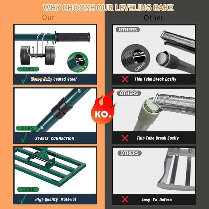 - Easy to Install: Installation is very simple. Includes step-by-step installation instruction,Rest assured, every Lawn leveling rake sent to you by Beeowner has undergone a series of quality inspection processes. If you have any questions, please contact us, and we will provide you with a satisfactory solution.