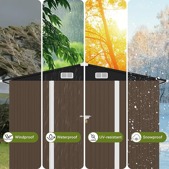 - Waterproof Tool Shed:The sloping roof design of this storage outdoor shed maximizes space utilization;effectively direct rainwater away from the structure to prevents the leakage,Don't worry about your items getting wet